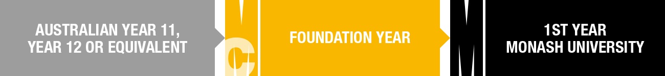 برنامه سال فاندیشن (Foundation Year) کالج موناش، یک برنامه پیش دانشگاهی با موفقیت ثابت شده در آماده سازی دانشجویان برای دانشگاه موناش است. دانشجوی در دوره فاندیشن، مهارتهای آکادمیک و انگلیسی شان به سطح مورد انتظار دانشجویان دانشگاه موناش توسعه می یابد و در عین حال با مطالعه این دروس، متقاضیان را برای دوره کارشناسی آینده آماده میکند. متقاضیان با این برنامه فاندیشن، می توانند برای ورود مستقیم به مقاطع کارشناشی در هر 10 دانشکده دانشگاه موناش آماده شوند. فرمت های این برنامه فاندیشن به سه صورت است: